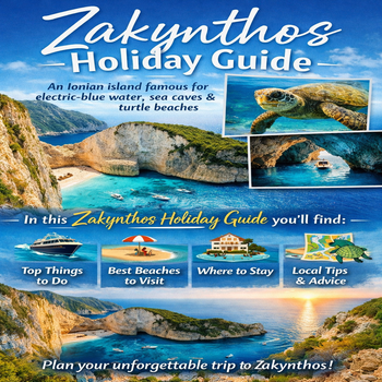 Zakynthos is an Ionian island famous for electric-blue water, dramatic limestone cliffs, sea caves, and protected turtle-nesting beaches in Laganas Bay (National Marine Park of Zakynthos). In this Zakynthos Holiday Guide, you’ll find the best things to do, must-visit beaches, where to stay, and practical local tips to plan an unforgettable trip.